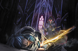 After Naga teleports them onto Grima's back, Grima instantly uses their power to critically wound everyone in an instant. Grima then speaks to Robin by creating a physical manifestation of Robin's class. After mocking them, Grima then offers Robin a take a chance to spare them if Robin were to get one with the Fell Dragon. Regardless of the option, Grima had no intention of sparing Chrom and the others, before Grima drags Robin into a void, where Robin would be absorbed into the Fell Dragon. Despite trying to resist, Robin becomes slowly consumed by the darkness the Fell Dragon unleashed on them. Weakened, Robin begins to despair, but the sounds of Chrom and the regular army pierces the darkness, inspiring Robin to stand up over again and fight back. Free from the Fell Dragon's evil, Robin breaks free from the void and rejoins the ground forces. Naga then uses her powers to restore everyone's strengths, as they then faced Grima and the army of Risen that Grima unleashed.